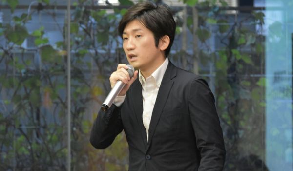 7月3日、ライフサイエンス・イノベーション・ネットワーク・ジャパン(LINK-J)が開催したネットワーキング・ナイトで講演する正林和也さん