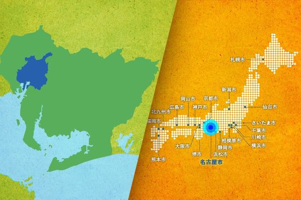 愛知県の名古屋市は、全16区から構成される政令指定都市。東京特別区部を除けば、横浜市・大阪市に次ぐ全国第3位の人口を有しています。栄や名古屋駅、大須、金山などの繁華街を持ち、栄と名古屋駅一帯には広大な地下街が存在し、地下鉄網も充実しています。東京や大阪に比べ、人口密度も高くないので、緑が多く広々とした街並みが広がっています。