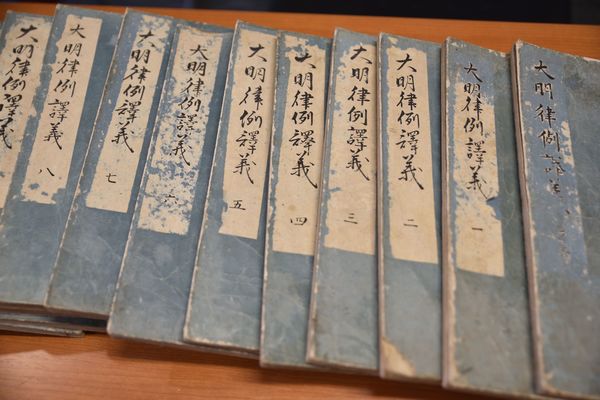 徳川吉宗の命により著述された明律の逐条和訳書「大明律例譯義」(だいみんりつれいやくぎ)。