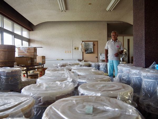 港の近くにある工房に並ぶ魚醤たち。トカラ時代からの魚醤も多くある