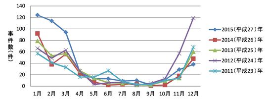 「食中毒は夏場が本番!」と思いきや、近年は冬場の対策が大切である。というのも、食中毒事件数の3分の1、また食中毒患者の半数以上がノロウイルスによるものであり、その発生が11月から翌年3月にかけての冬場に集中するからである(参考)。食品従事者にとって、冬場はノロウイルスとの闘いの時期でもある。