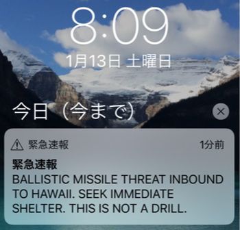 1月13日土曜日の朝8時過ぎ、ハワイ・オアフ島のホノルル滞在中であった筆者の携帯が緊急警報を鳴らし、緊急警報メッセージが飛び込んできた。