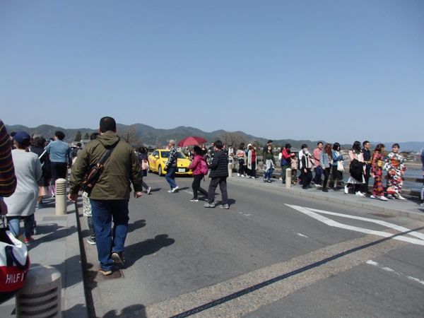 観光客でごった返す嵐山。ほとんど無秩序状態