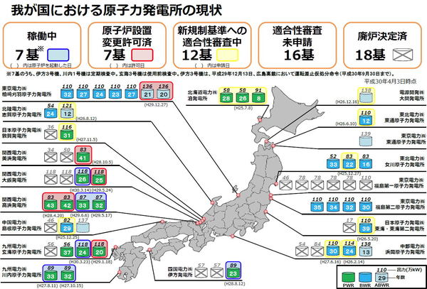 今のエネルギー基本計画では、2030年に原子力の電源比率を20~22%としており、これがパリ協定の目標に対応する。新しい基本計画もそれを踏襲する予定だが、この目標を達成するには30基以上の原発が稼働する必要がある。