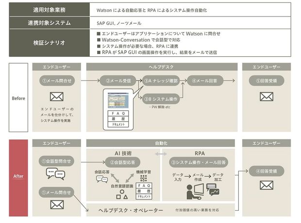 さらに同社では、現在のRPAのさらに先に来るであろう、近未来のオートメーション時代の到来も視野に入れている。現在のRPAが扱えるのは構造化されたデータや単純な業務ルールだけだが、既に現在でも、OCRや音声認識技術などと組み合わせて非構造化データを扱えるようになったり、BPMエンジンと密接に連携することで複雑なルールの業務を自動化できるようになるという。事実、既にIBM Watsonによる自動応答とRPAを組み合わせたヘルプデスク自動化の事例や、OCRとRPAを組み合わせて請求伝票の入力作業を自動化した事例がある。