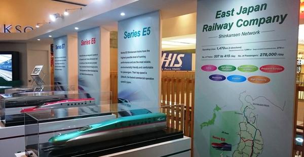 クアラルンプールの高級ショッピングモールに特設された「Japan's Shinkansen」(日本の新幹線)の展示場。日本の技術と安全性は、マレーシアでも断トツの人気だ(筆者撮影)