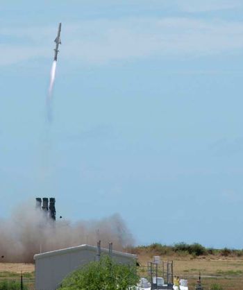 SINKEXで米陸軍がノルウェイ製地対艦ミサイルNSMを発射した瞬間(写真:国防総省)