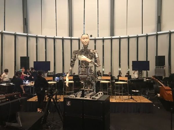 主役のマエストロは「オルタ2」。2016年に石黒氏と池上氏がタッグを組んで制作したアンドロイド「オルタ1」の進化版だ。今回も石黒氏がハード面を、そこに搭載するAI(人工知能)の自律型運動プログラムを池上氏が担当し、歌いながらオーケストラを指揮するという、唯一無二のアンドロイドが完成した。
