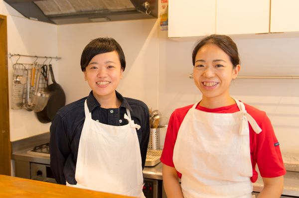 店の厨房に立つ小松さん姉妹。姉の遥香さん(左)と妹の佳矢さん(右)