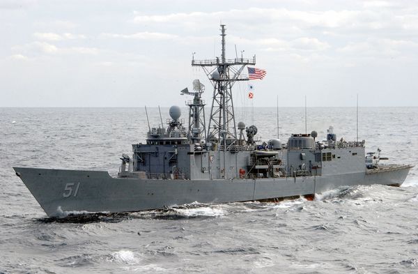 台湾海軍のミサイルフリゲート「成功級フリゲート」の基になった米海軍のオリバー・ハザード・ペリー級フリゲート(出所:米海軍)
