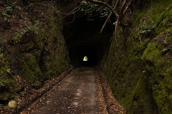 「鮫ヶ浦水曜日郵便局」に続くトンネル。かすかに出口が見える