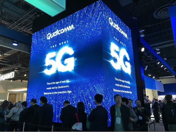CES 2019のクアルコムブースの5Gロゴ(筆者撮影)