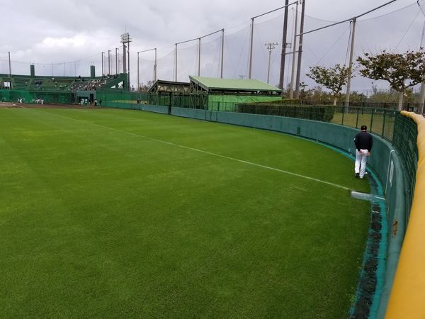 沖縄県国頭村で行われていたキャンプ最終日。10時50分から始まったバッティング練習を、栗山監督はライト、センター、レフトと、ほとんどフェンス際で眺めていた。ときに、転がってくる打球を拾っては、ボール拾いを手伝ってくれている地元の子たちへと投げ渡す。彼らと言葉を交わすシーンもあった。