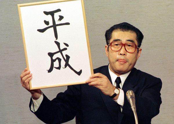 「平成」の元号は、1989年1月7日、首相官邸で、小渕恵三官房長官から発表された(写真:Fujifotos/アフロ)