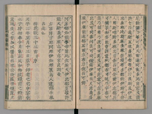 『萬葉集 20巻』より。「初春令月 氣淑風和 梅披鏡前之粉 蘭薫珮後之香」の記述がある。(国立国会図書館デジタルコレクション)