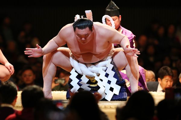 2019年4月12日、大相撲川崎場所での横綱・白鵬(写真:長田洋平/アフロスポーツ)