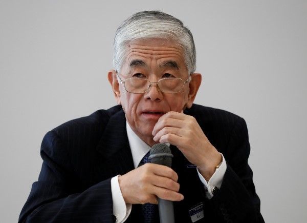 子会社のデータ改ざんで記者会見する東レ日覺昭廣社長(写真:ロイター/アフロ、2017年11月28日)