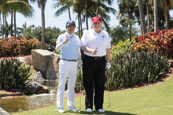 2017年2月、フロリダ州のマー・ア・ラゴでゴルフを楽しむトランプ大統領と安倍首相