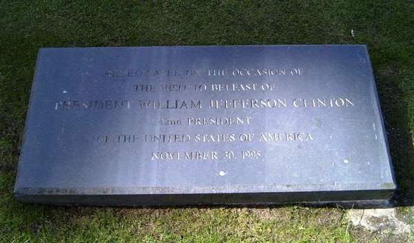 ビル・クリントン米元大統領が1995年に来訪したことをを記した石板(ベルファスト)