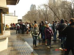 3月14日(月曜日)午後12時。青年同盟の動員と思われる学生たち約100人が手に手に白いカーネーションを持って、大使館前に集合、花の山を築いて戻っていった。青年の集まりでよくある笑い声などもまったくなく、淡々と、かつ丁重な献花であった。1月には同じ青年たちが日本におけるロシア国旗侮辱に対して、大使館に対して抗議を行っている