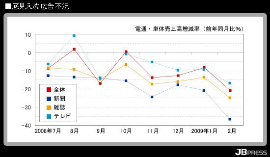 しかも広告不況は、2008年に底を打ったわけではない。それどころか、足元は「底なし沼」のような状況なのだ。