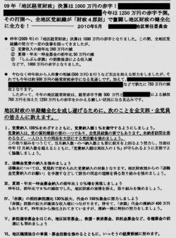 そんな大票田を持つ地区委員会が、1年ほど前、全党員に対し財政健全化を訴えるビラを配布した。
