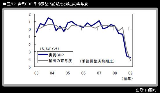 内外需別の寄与度は、内需が▲2.3%ポイント(1次QEの▲2.6%ポイントから上方修正)、外需が▲1.4%ポイント(1次QEと変わらず)。昨年10-12月期(改定値)は、内需が▲0.3%ポイント、外需が▲3.2%ポイント。輸出急減ショックから国内需要の落ち込みへと、景気悪化の主役が変わりつつある姿にも変わりはない。なお、実質GDPは前年同期比では▲8.8%である。