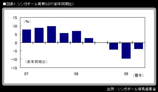 シンガポール貿易産業省(MTI)は今回のGDP速報値の改善に合わせる形で、2009年の成長率見通しを、これまでの前年比▲6.0~▲9.0%から同▲4.0~▲6.0%に上方修正した。