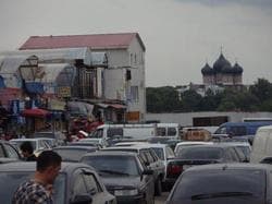 巨大市場(チェルキゾフスキー市場)の駐車場はいつも満車で身動きが取れない