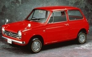 ホンダが本格的に4輪の実用乗用車の世界に進出した第1作、N360(1967年登場)。当時としては斬新な「2BOX」フォルム、エンジン(下部にトランスミッションを一体化した2輪車的構造)を前に横置きした前輪駆動レイアウトだった。