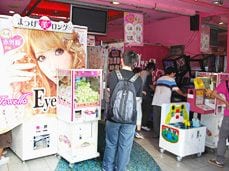 西門町のプリクラショップ。台湾では、日本のアイドル風のメイクも大人気