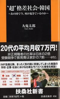 韓国は日本をお手本にして、日本に追いつけ追い越せで突っ走っているとばかり思いきや、日本のはるか先を走っていっているようだ。近い将来の日本の姿を見せられているような気がして怖くなった。『“超”格差社会・韓国~あの国で今、何が起きているのか~』(扶桑社新書)という本を読んだ後の素直な感想だ。