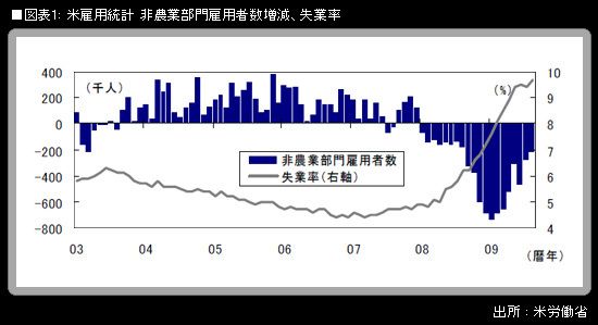 米国の雇用情勢は、景気サイクルの一致指数である非農業部門雇用者数でみた場合、悪さの度合いは確かに、徐々に緩和してきている。しかし、雇用者数が減少を続けており、雇用情勢の悪化が続いているという事実は動かない。