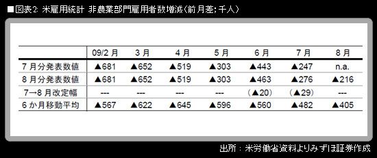 4日に発表された米8月の雇用統計で、失業率は9.7%(前月比+0.3%ポイント)と、市場予想中心より悪い水準。非農業部門雇用者数は▲21万6000人で、市場予想中心よりも小さなマイナス幅にとどまったものの、前月・前々月分が計▲4万9000人の下方修正になったことを踏まえれば、予想からさほど乖離しなかったと言える。