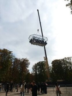 その名は「dinner in the sky」。パリの中心部にあるチュイルリー公園で、空中に浮いた状態で食事を楽しむというもので、「Cuisine Créative(キュイジーヌ・クレアティヴ)」という雑誌の主催による。