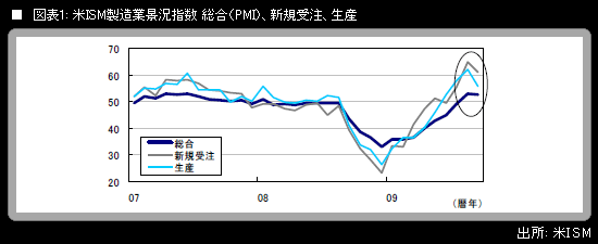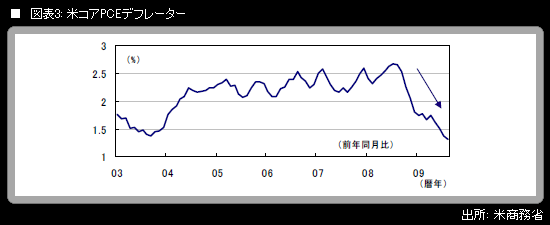 1日の米国市場で出てきた各種経済指標の内容と、株安・債券高の方向での大きな動きを見る限り、生産関連指標の改善を足場にした景気楽観論と、バランスシート調整を背景とする景気回復力の脆弱さや需給ギャップ拡大に着目した景気悲観論との「綱引き」には、どうやら決着がついたようである。勝利したのは、後者。ニューヨークダウ工業株30種平均は、前日比200ドルを超える大幅安になった(7月2日以来のこと)。一方、債券市場では米30年債利回りが節目の4%を大きく割り込み、3.96%に低下。米10年債利回りも直近レンジを下抜けて一時3.16%まで低下した(5月21日以来の低水準)。