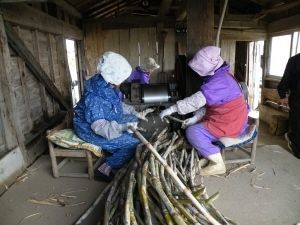 頑なに伝統の製法を守っている31号組合は、頭領の持田さんをはじめ、みんな60年以上もさとうきび農家を続けてきた人ばかりだ。春から秋に丹精込めてさとうきびを育て、燃料となる薪を作って冬を待つ。黒糖作りは奥さんや後継者の息子さんたちが総出で行う。まさに家族ぐるみの協同作業である。