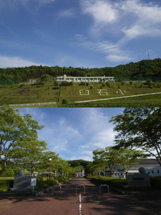 このユニークな建物が飯樋小学校。グーグルマップの航空写真モードで真上からそのフォルムを初めて見たときは軽いショックを覚えた。校舎内の様子の一部を『までいの力』で見ることができる