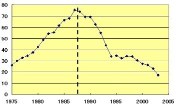 DRAMシェアと特許出願数を急激に伸ばしていた日本が、87年にピークアウトする。一体、87年に、何が起きたのか?