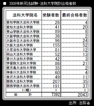 新方式となった司法試験合格者の減少が話題を呼んでいる。2009年の合格者は前年を22人下回る2043名となり、制度スタート時の目標2500~2900人を大きく割り込んだ。制度設計時には合格率7~8割を想定していたのに、今年は3割を切って27.6%まで低下した。