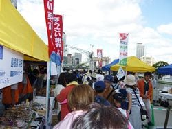 大阪市中央区、江戸時代の船着き場を復活させた八軒家浜には、10月10~11日の2日間、秋の味覚を取り揃えた仮設テントが並び、家族連れの参加者たちは舌鼓を打った。