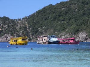 バンコクから深夜バスで南下し、7時間。タイの南に位置するクラビという街の埠頭から、パンガン島行きのポンポン船に乗り込んだ。船はすでに定員オーバーと思えるほどごった返し、タイ人や欧米人旅行者でひしめき合い、足の踏み場もない。