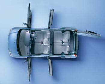 「ダイハツの軽」の良質化の先陣を切った「ムーヴ」。2002年フルモデルチェンジしたモデル。こうやってカットモデルを真上から見てもクルマ全体の中に占める居住空間の大きさがよく分かる。ドアは90度まで開き、シートもこの時に「軽の常識」が変わった。(写真提供:ダイハツ)