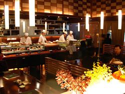 「同寿司」の店内。薄暗い照明がムーディーな雰囲気を演出している