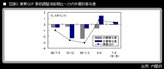 内閣府が12月9日に発表した7-9月期の四半期別GDP2次速報(2次QE)で、実質GDPは前期比+0.3%(同年率+1.3%)となり、1次QEから前期比で0.9%ポイントの大幅下方修正となった。下方修正されること自体は、法人企業統計季報で示された7-9月期の設備投資や在庫投資の弱さから十分予想されたことではあるが、そのマグニチュードは大方の予想をはるかに上回った。前期比への内外需別寄与度は、内需が1次QE時点の+0.8%ポイントから一転して、▲0.1%ポイントというマイナス寄与に変わった。外需については+0.4%ポイントで改定なし。4-6月期と7-9月期は、個人消費に政策による押し上げ効果が出ていたわけだが(後述)、設備投資の減少が続いたことなどから、結果としては外需主導のリバウンドが続いていたことになる。実質GDPの前年同期比は▲5.1%に下方修正された。