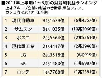 これに対して、サムスングループは、主力の半導体や液晶パネルの市況悪化などで上半期の利益額が同20%減少し、逆転劇となった。