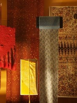 祐子さんが仕立てた着物は、現代のこの地方の布を扱うコーナーでスポットを浴びて立っていた。