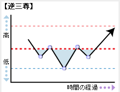 三尊天井と正反対の形。強力な底入れのサインとされている。