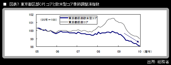 全国CPIについては今回、2009年の年平均データが併せて発表された。コアは前年比▲1.3%(4年ぶりのマイナス)、欧米型コアは同▲0.7%(2年ぶりのマイナ