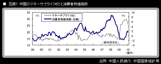 なお、グラフから分かるように、中国ではセオリー通り、マネーサプライがCPIに先行して動くという関係が見出される。